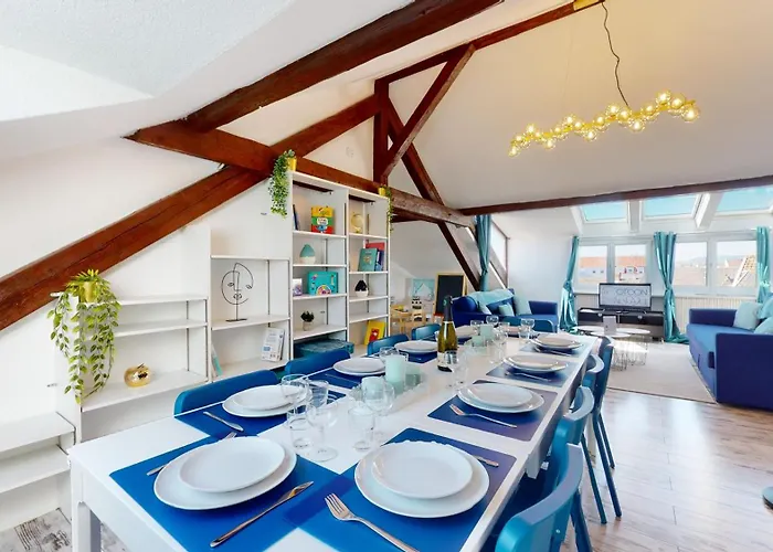 Indkvarteringen er placeret inden for et 5 minutters kørsel fra La Petite Venise. Byens centrum ligger kun 1 km væk og Basel Mulhouse Freiburg lufthavn er 65 km derfra. Gæsterne kan nyde franske snacks og måltider i Winstub au Cygne placeret 250 meter væk. Denne ferielejlighed er placeret ved siden af Comedie de l'Est.